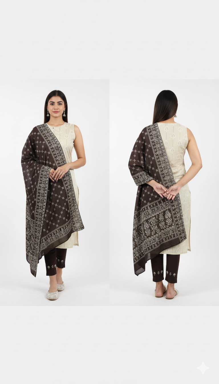Color Coordination – Pair with complementary or contrasting fabrics for bottom wear and dupattas.